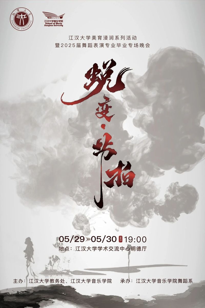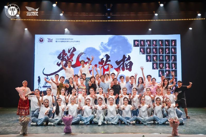 5月29日至30日晚,江汉大学学术交流中心明德厅座无虚席,由江汉大学教务处、音乐学院主办的美育浸润系列活动暨2025届舞蹈表演专业毕业晚会“蜕变・节拍”在此连续两晚震撼上演。校职能部门部分领导和老师、音乐学院领导班子、校实习基地代表、兄弟学院学生代表以及毕业生家长等近1400人,共同欣赏这场舞蹈艺术盛宴。