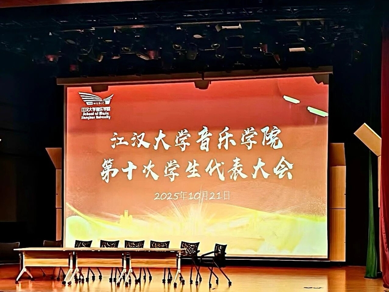 2025年10月21日,我院第十次学生代表大会在江汉大学小音乐厅召开。院团委书记周正儒、院团委学生会全体成员及各年级学生代表、党员代表参会。