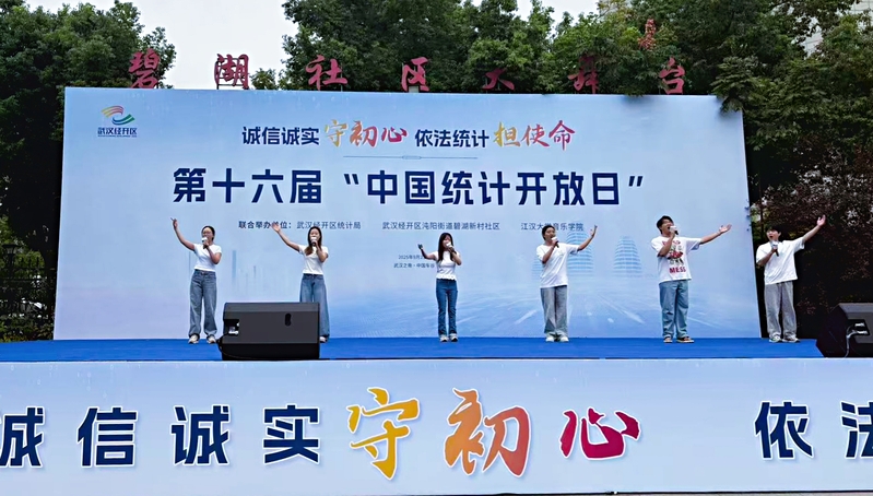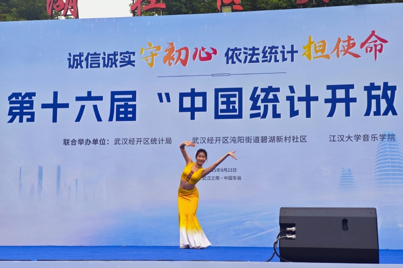 9月22日,江汉大学音乐学院石山英子老师带领学生党员代表,参与由武汉经开区统计局、武汉经开区沌阳街道碧湖新村社区、江汉大学音乐学院联合主办的院社共建暨第十六届中国统计开放日主题活动。活动以“党建引领聚合力,文艺赋能促交流”为核心,将党员共建与统计科普、文化服务深度融合。