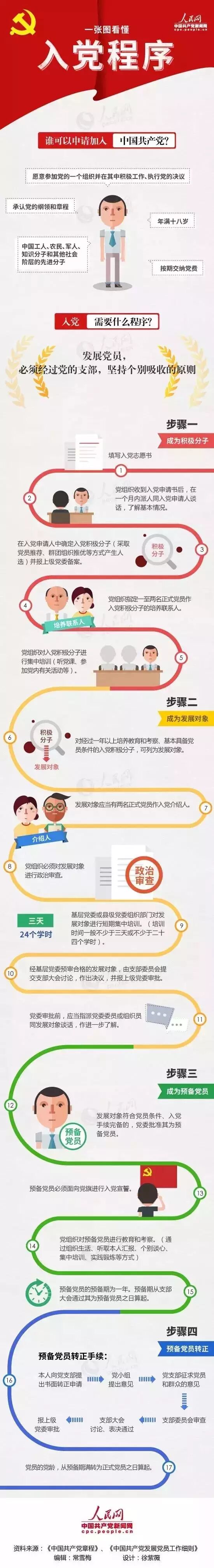 来源:说人解事(ID:renshirenmian)、中国共产党新闻网・学习微平台(ID:cpcnews) 6月29日,中央组织部对外发布2014年中国共产党党内统计公报,最新党内统计主要数据新鲜出炉:截至2014年底,中国共产党党员总数为8779.3万名,比上年净增110.7万名,增幅为1.3%;中国共产党现有基层组织436.0万个,比上年增加5.6万个,增幅为1.3%。 纵观2014年中国共产党党内统计公报,可以看出,党员队伍结构得到改善,进一步展现出生机与活力。 从党员的性别、民族和学历看,女党员2167.2万名,占党员总数的24.7%,所占比例较上年提高0.4个百分点;少数民族党员605.1万名,占党员总数的6.9%,所占比例与上年持平;大专及以上学历党员3775.5万名,占党员总数的43.0%,所占比例较上年提高1.4个百分点。 从党员的年龄看,35岁及以下的党员2247.9万名,占党员总数的25.6%;36岁至45岁的党员1779.2万名,占党员总数的20.3%。 2014年全国共发展党员205.7万名,较上年减少35.1万名,降幅为14.6%。通过对比2013年党内统计公报,可以发现,发展党员增幅已经连续两年低于2%。 2014年,各级党组织还注重在生产、工作一线和新的社会阶层中发展党员。2014年全国在生产、工作一线发展党员96.2万名,占发展党员总数的46.8%;在抗洪抢险、救灾等急、难、险、重特殊情况下发展党员694名;在新的社会阶层中发展党员1.3万名。 根据这份最新的统计公报,截至2014年底,全国共有党的各级地方委员会3218个。其中,省(区、市)党委31个,市(地、州)党委397个,县(市、区)党委2790个。 以城市街道、乡镇、社区(居委会)、建制村党组织的维度看,全国7567个城市街道中,7565个已建立党组织,占城市街道总数的99.97%;32756个乡镇中,32753个已建立党组织,占乡镇总数的99.99%;93018个社区(居委会)中,92581个已建立党组织,占社区(居委会)总数的99.53%;577336个建制村中,577273个已建立党组织,占建制村总数的99.99%。 以机关、事业单位党组织的维度看,全国23.7万个机关单位中,23.6万个已建立党组织,占机关单位总数的99.6%,所占比例与上年持平;54.6万个事业单位中,50.6万个已建立党组织,占事业单位总数的92.7%,所占比例较上年提高2.0个百分点。 一张图看懂入党程序 本期编辑:崔 鹏