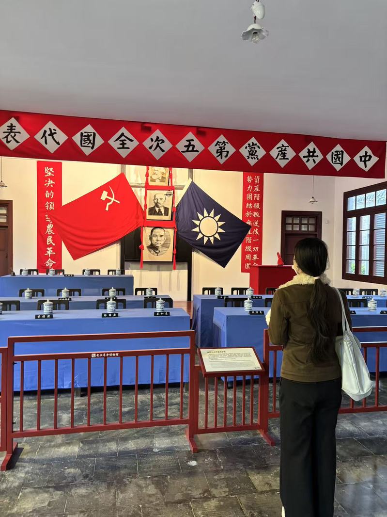 在都府堤路的革命旧址,讲解员结合开幕式会场复原陈列与珍贵史料,详细讲述了1927年大革命危难之际,中共五大召开的隐秘历程及选举产生首个中央监察委员会的重大意义,还提及首届监委10名委员中8人牺牲、无一人叛党的壮烈事迹。