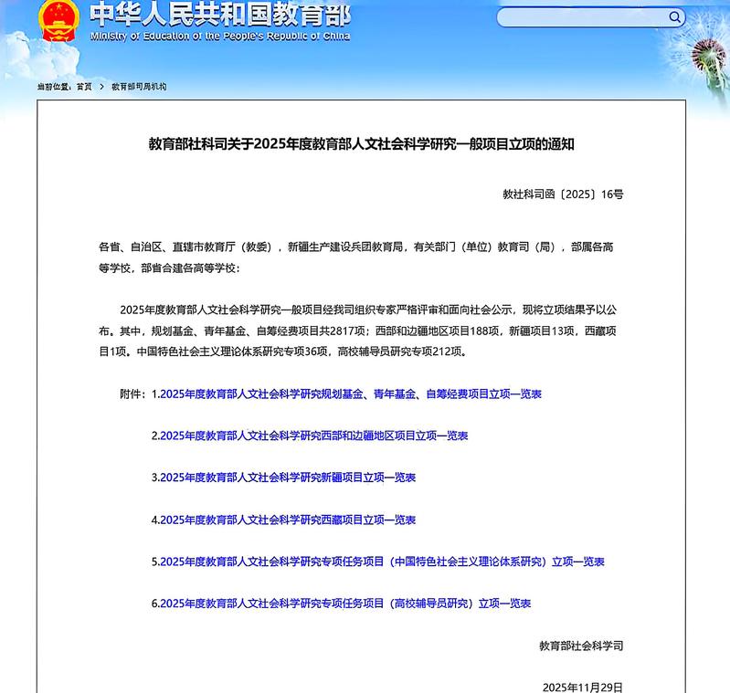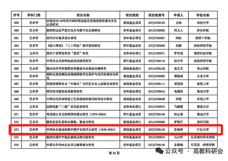近日,教育部社科司公布了2025年度教育部人文社会科学研究一般项目立项名单,我院张艳林副教授主持的《中西结合视域的新中国声乐批评史研究(1949-2024)》(编号:25YJA760140)获得立项。