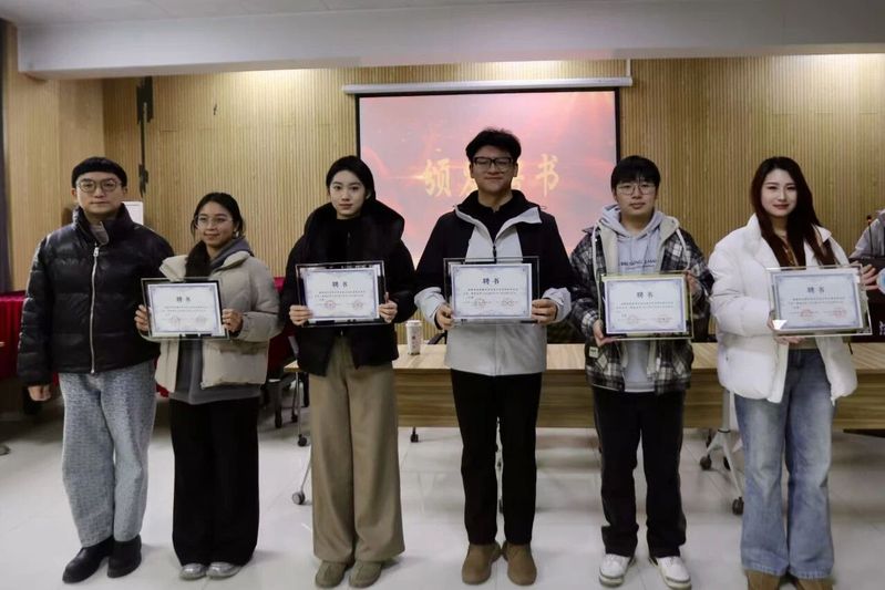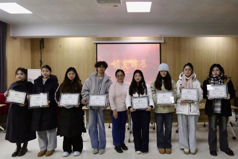 表彰环节有序开展,现场先后进行聘书颁发与先进表彰。陈盼莹老师为新一届部长颁发聘书,周正儒老师为学生会主席团成员颁发聘书。