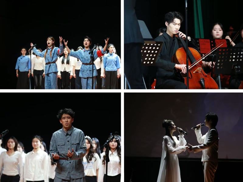 18日晚,音乐表演系合作音乐会精彩上演。音乐会分上下半场进行:上半场,《他究竟是谁》《All I ask of you》等经典音乐剧选段轮番上演,学子配合默契,钢琴伴奏相得益彰,精准传递剧目情感与精髓;下半场聚焦民族歌剧《八一起义》选段,《我的入党志愿书》《拿起枪,去战斗》等曲目激情满怀,多器乐伴奏搭配合唱,生动还原革命年代的热血征程与信仰力量。
