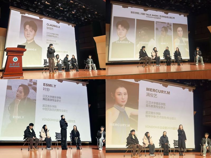 此次邀请的四位优秀校友,均在各自领域实现“上岸”突破——有的深耕专业、成功考取顶尖音乐院校研究生的学术达人,也有顺利入职艺术院校任教的优秀校友,他们分别是2018届毕业生满俊艺、2023届毕业生徐培然、2024届毕业生吴思莹、2024届毕业生叶妙,四位校友他们带着对母校的眷恋、对学弟学妹的期许,跳出传统分享的刻板模式,以脱口秀为载体,将自身“上岸”路上的艰辛与收获、迷茫与坚守,化作一个个幽默鲜活的故事。